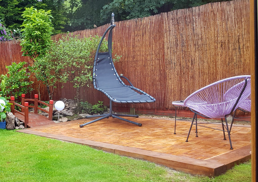Elaine used 5 of our 2200mm sleepers to create a fantastic decking area. "Loved the sleepers. We used them to create a 3.4m x 2.3 decking area. We treated them and stained them to match the decking material. We think they look amazing."