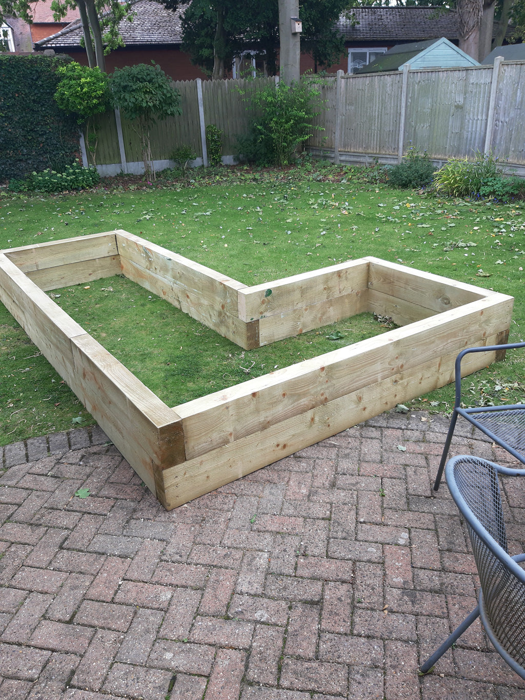 Gary purchased ten of our 2200mm sleepers to make a custom shaped raised bed and purchased one bag of our loam topsoil - this is a photo from Gary before filling. Thanks for the photo Gary, great looking garden bed!