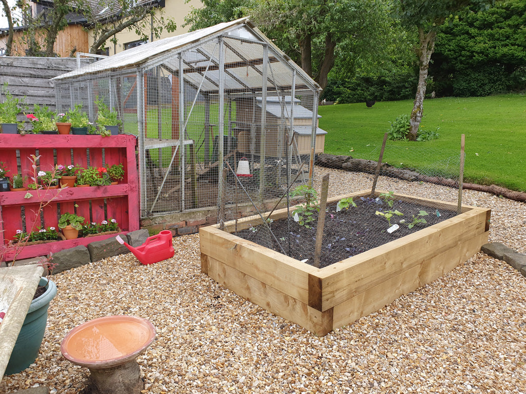 Kirsti purchased one of our 2300mm x 1300mm raised bed kits and is using it for growing cabbage, mini cucumbers and cougettes. Fanastic use of the pallet base with the flowers and herbs too - thank you again for your feedback and photo Kirsti!