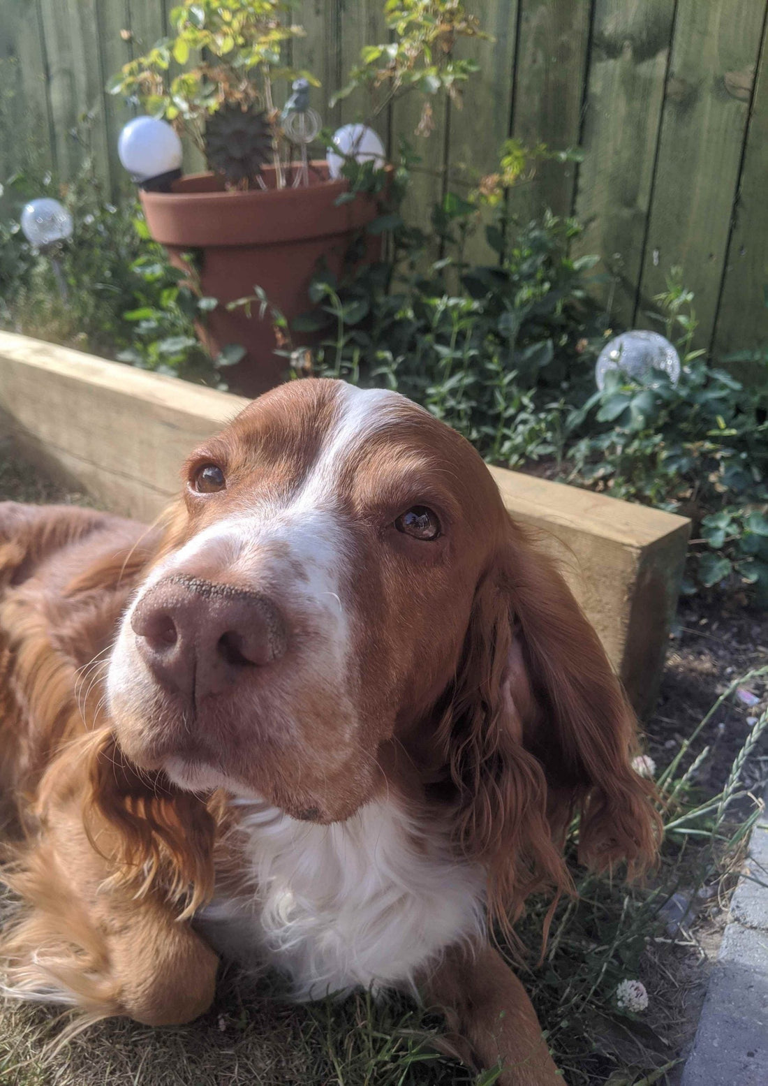 Sara used 10 of our 1200mm length garden sleepers to create this great looking border divider - mostly blocked by her beautiful Spaniel Toby.. thank you for sharing Sara!